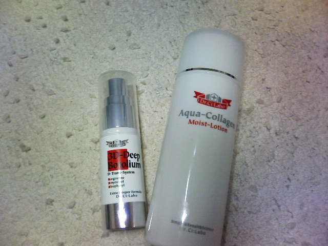 アクアコラーゲンローションは、今回初めて使いました。 最近できたのかな?以前はなかったような気がします。 最初からゲルっていうのに抵抗感が合ったのですが、これがあるなら万全! けっこう堅めのテクスチャーで、容器をちょっと振ってもあまり出てきません。出すぎるよりはいいのですが。 肌研(ハダラボ)極潤ヒアルロン液にもちょっと似ている感じですが、浸透はダンゼンこっち。極潤ヒアルロン液は2度塗りすると、浸透しないで肌にたまっている感じになります。 コレをハンドプッシュして、目元用の3D.D.ボトリウムを擦り込んでアクアコラーゲンゲルをぬりぬり。 やはりエバメールよりはこっちのほうが浸透する感じがします。