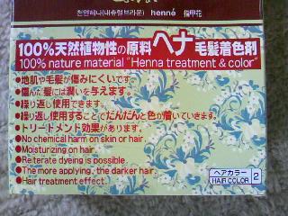 「ヘナはオレンジ以外はかぶれる」といわれたことがあるので、ずーっとオレンジだけでしたが